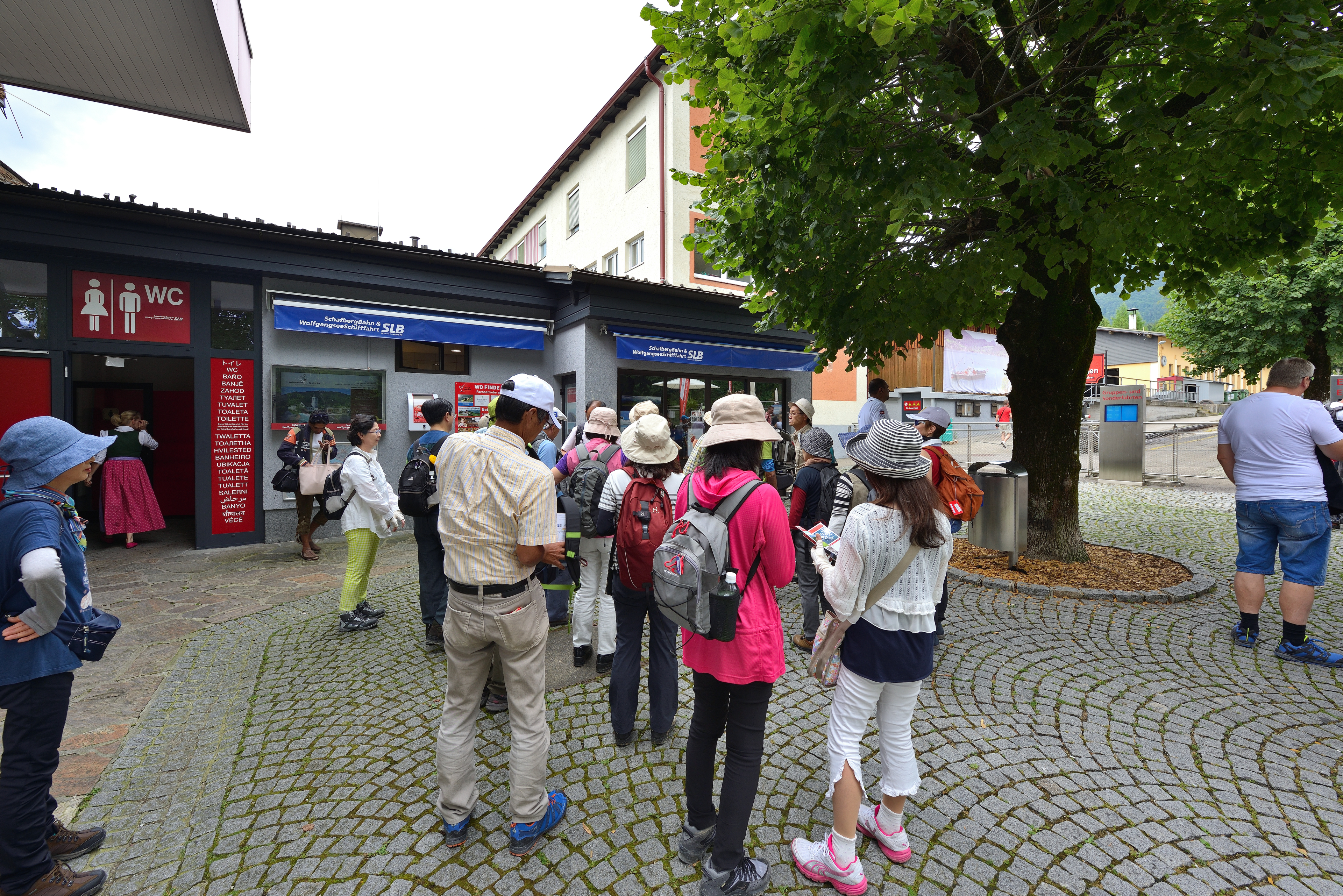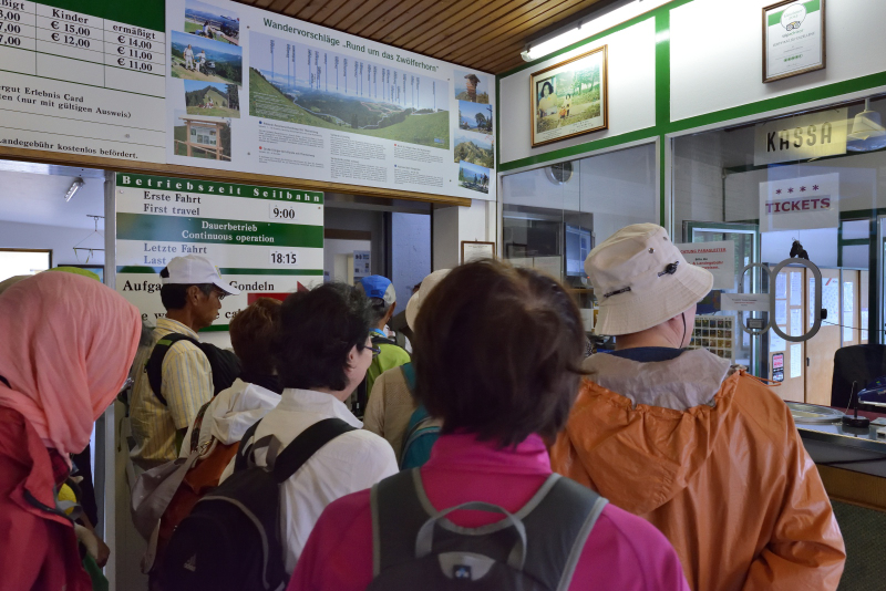 中央部の通路から二階に上がり、ゴンドラの搭乗に向かう。