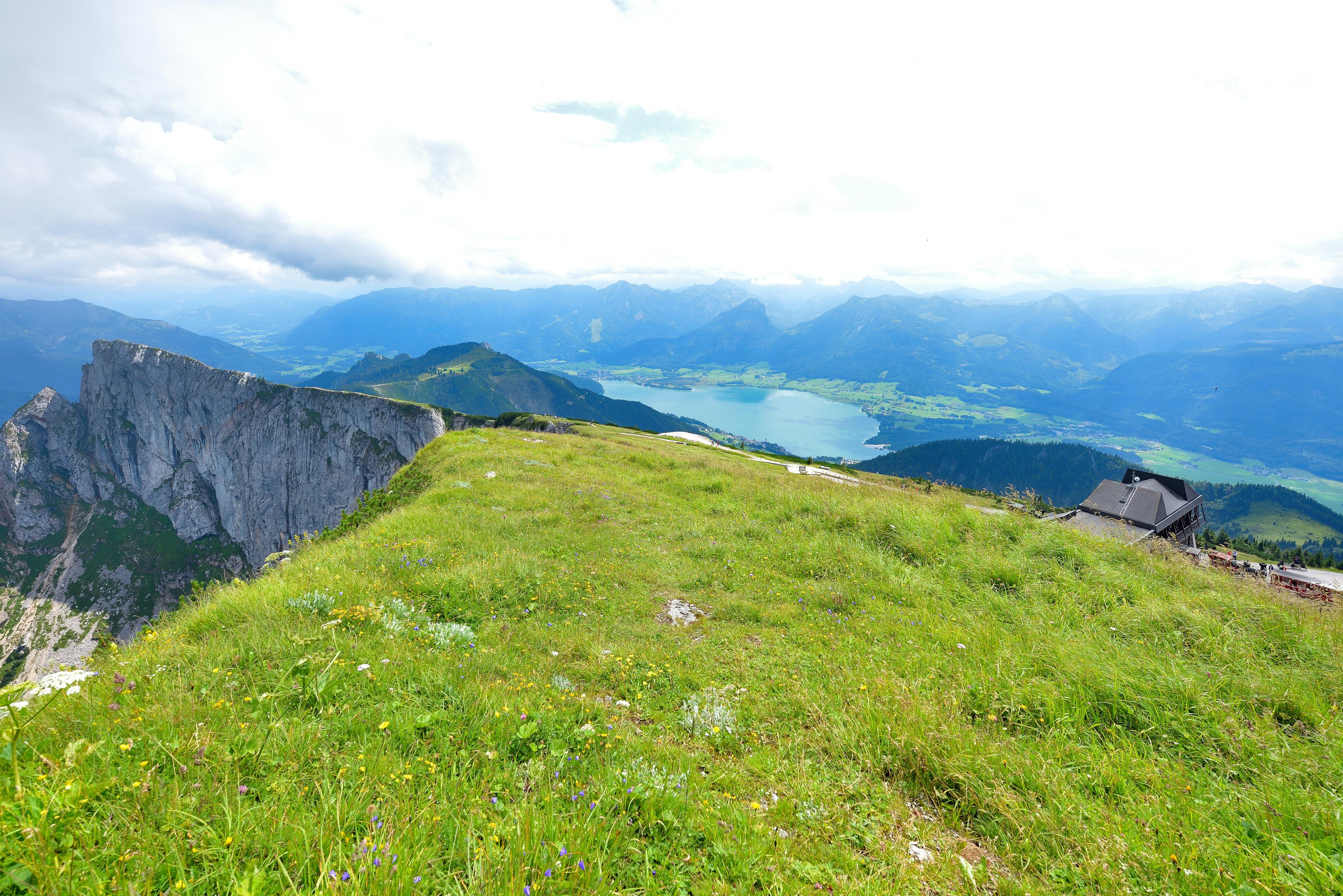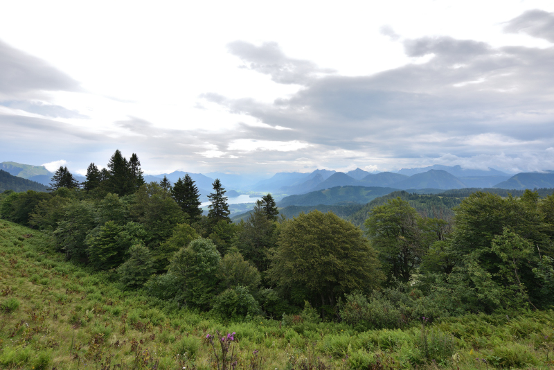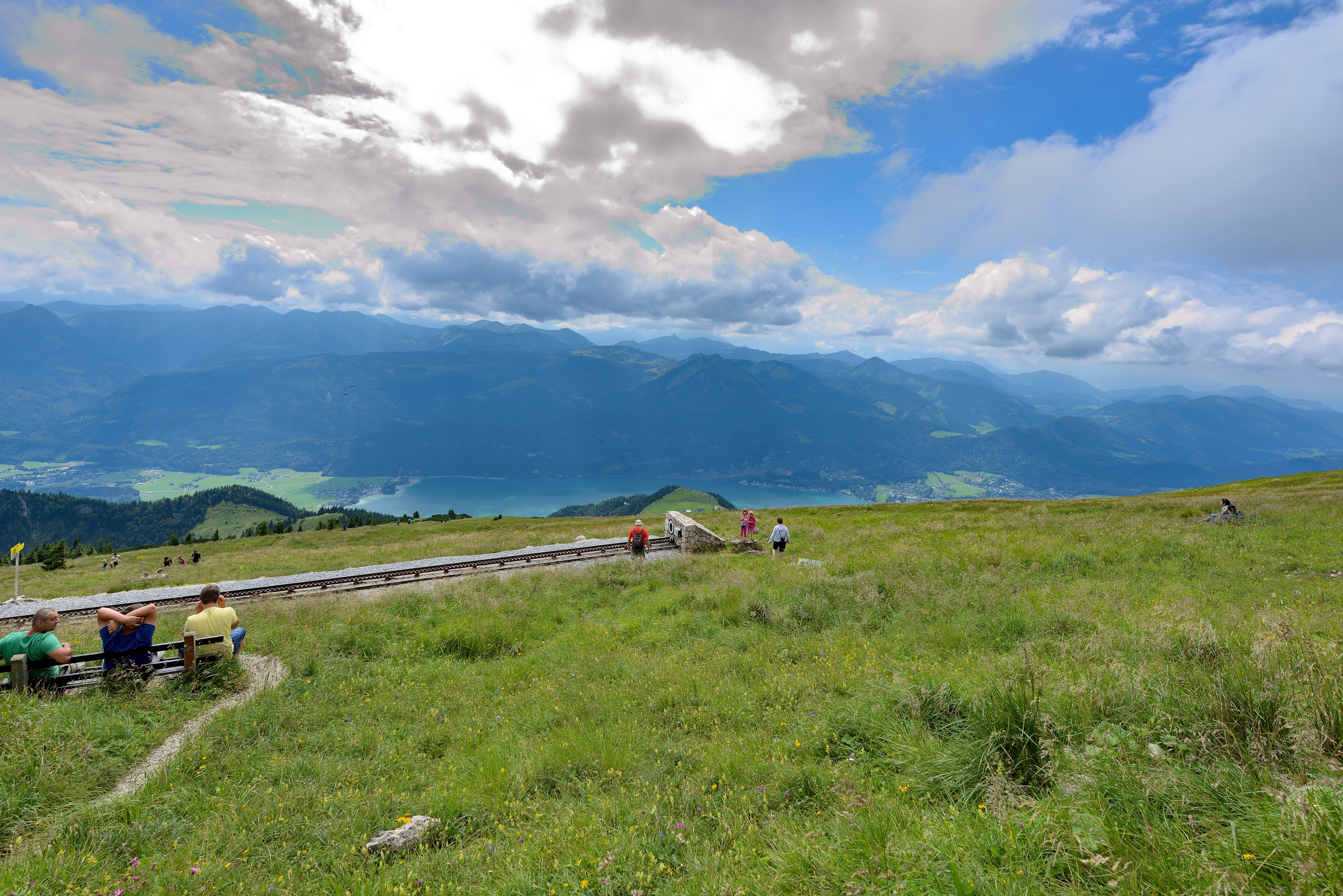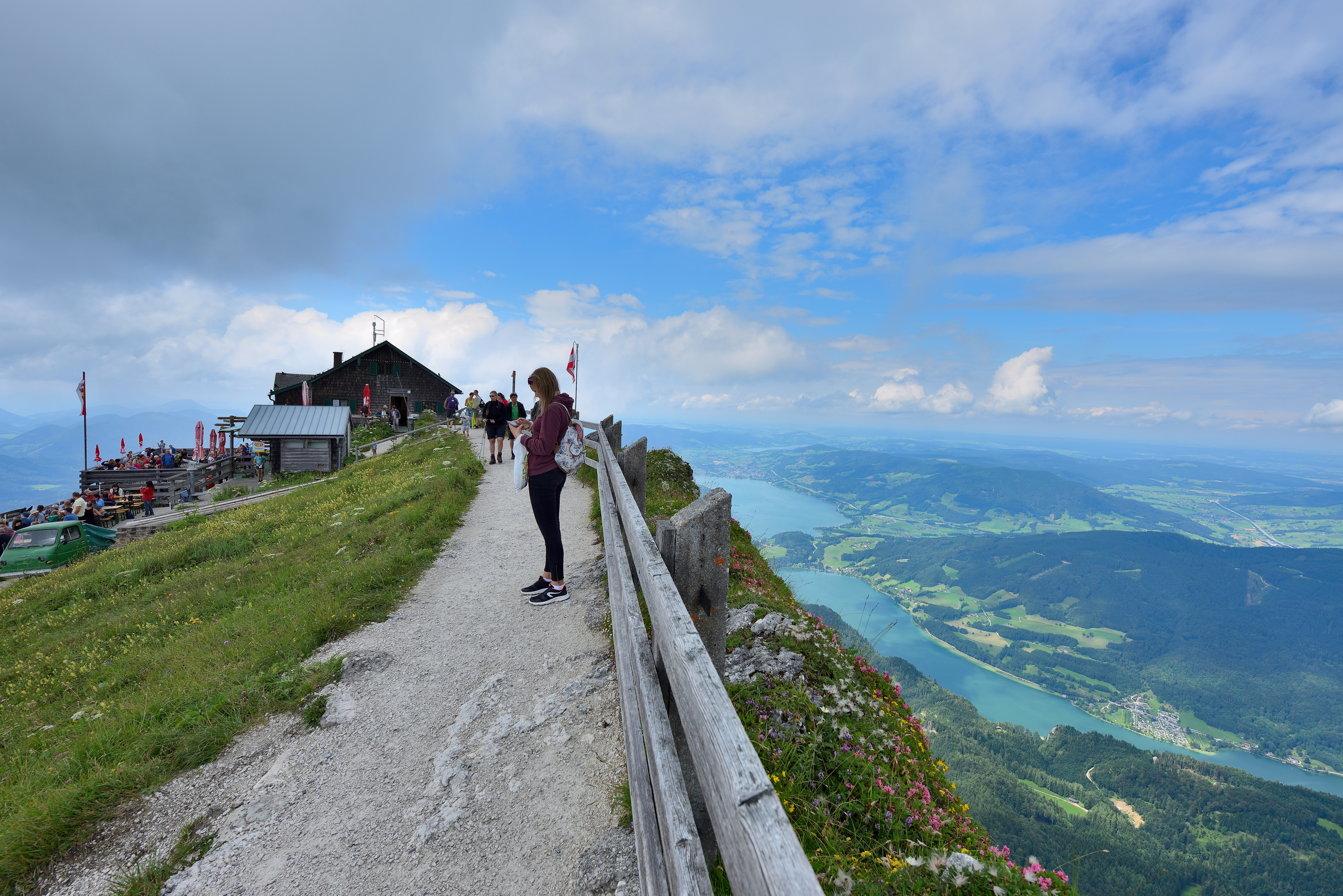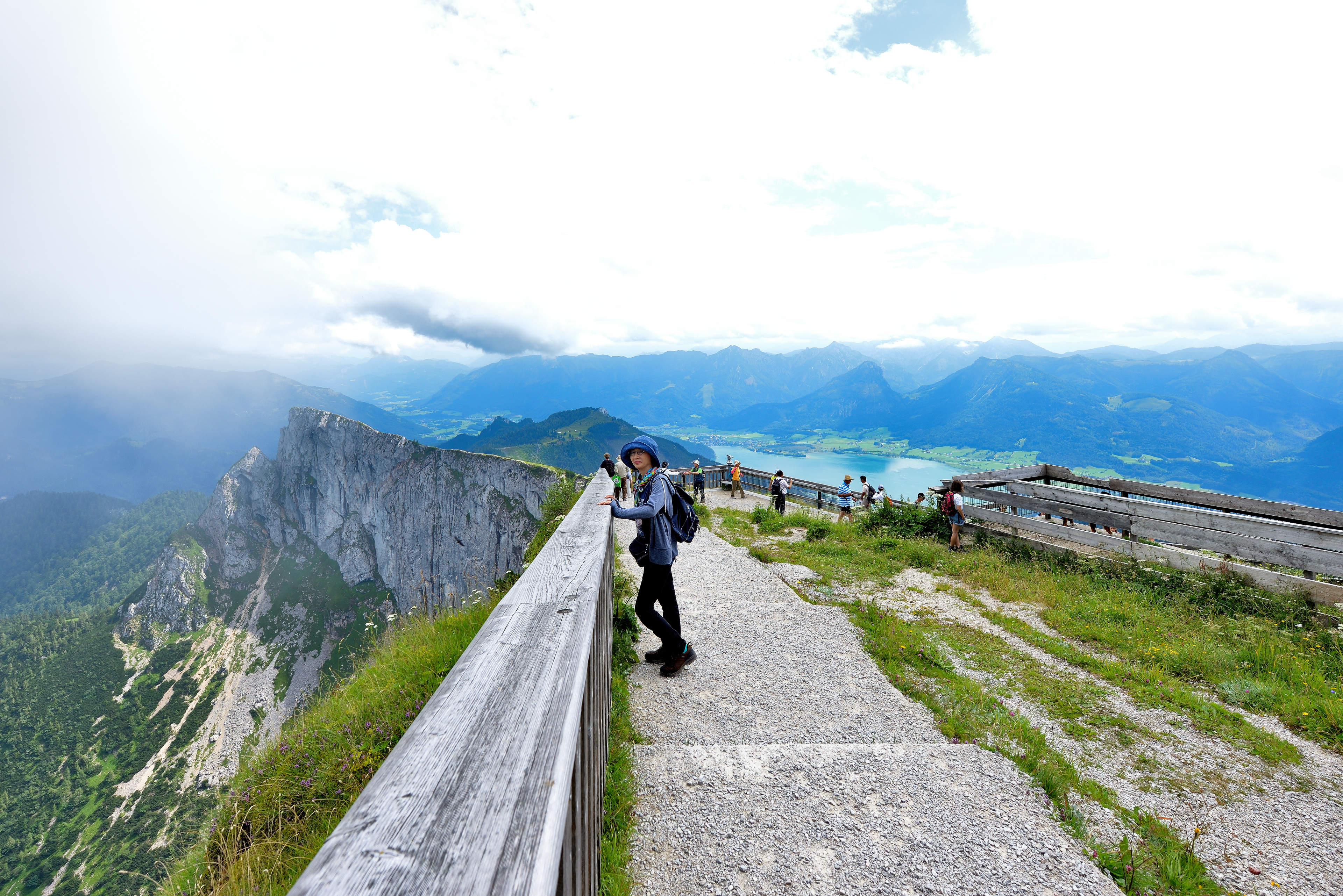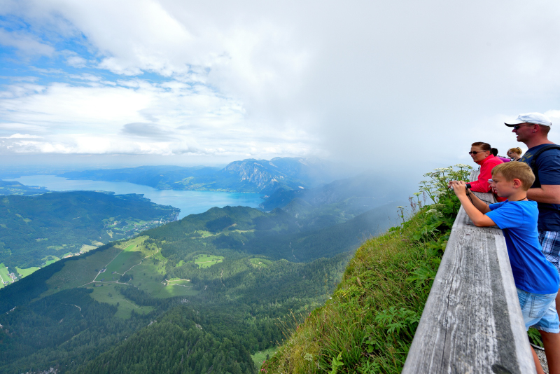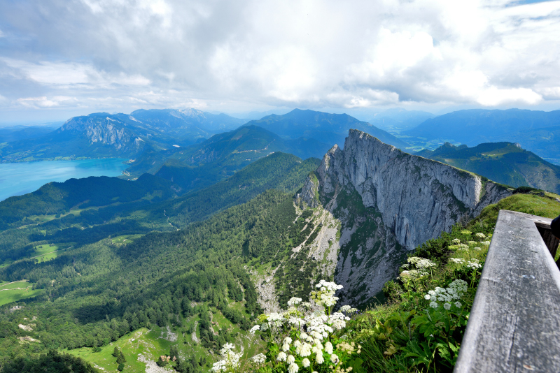 眼下に見えるのは、ヴォルフガング湖 [Wolfgangsee] と、その北西湖畔に位置するザンクト ギルゲン [Sankt Gilgen] の町。