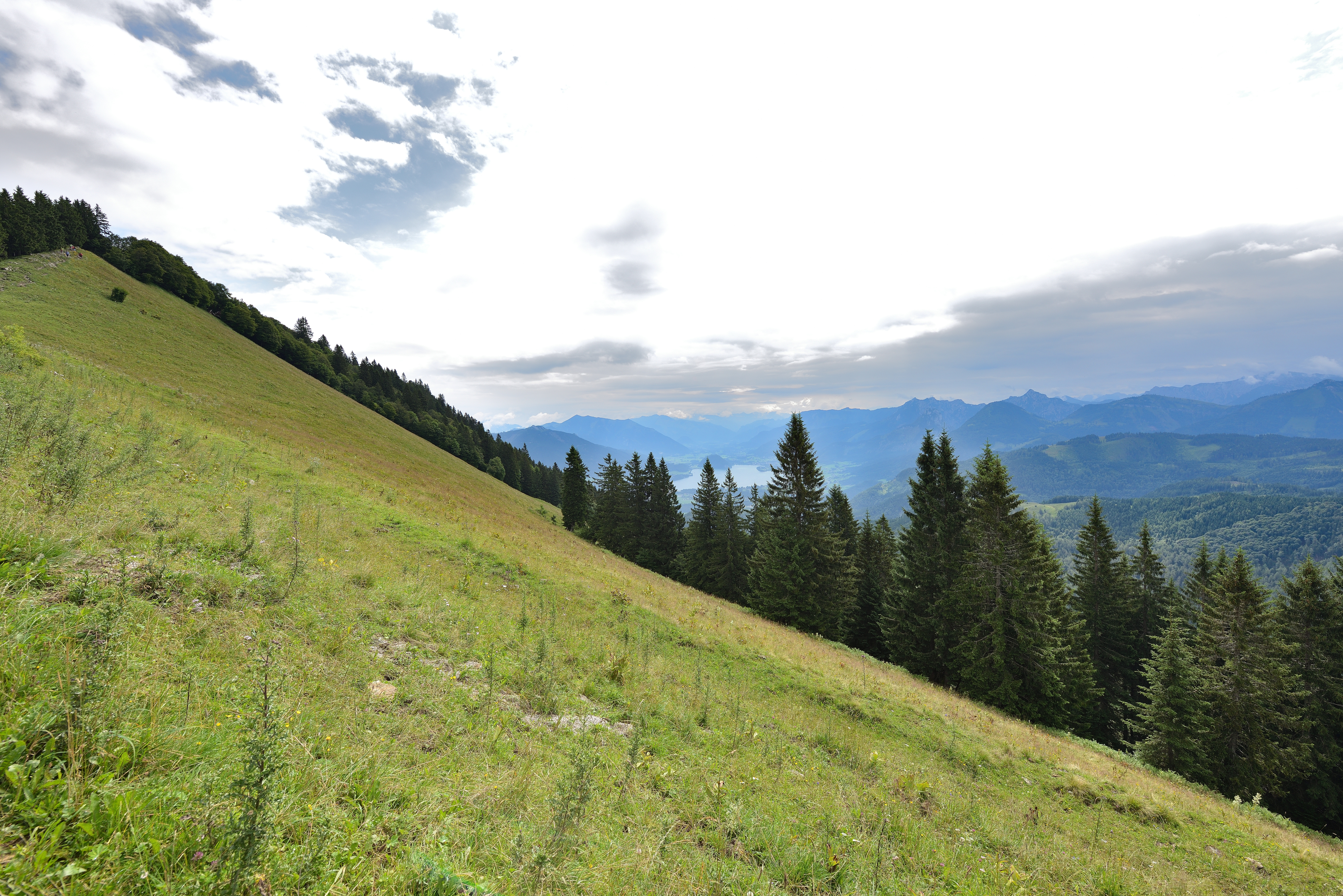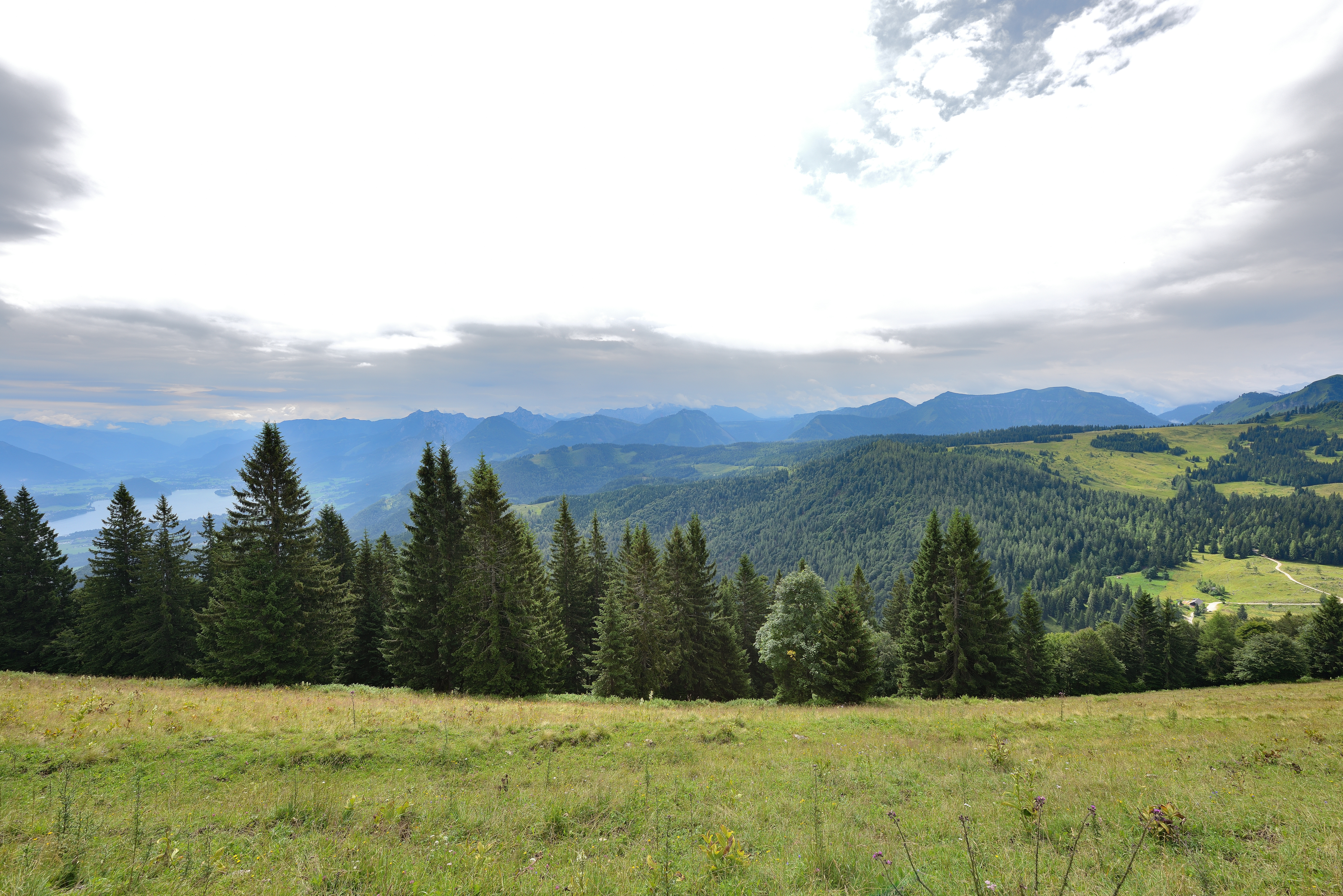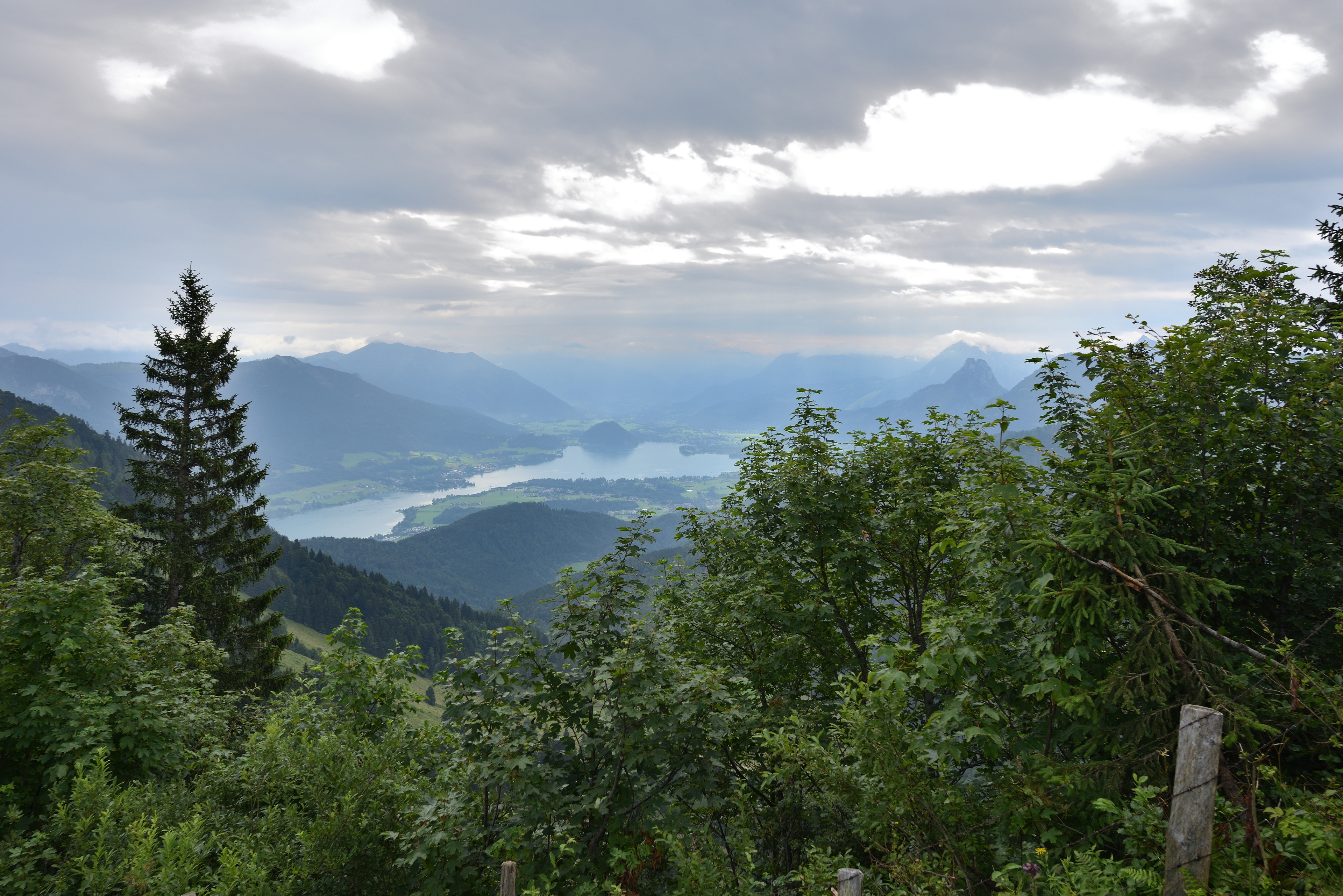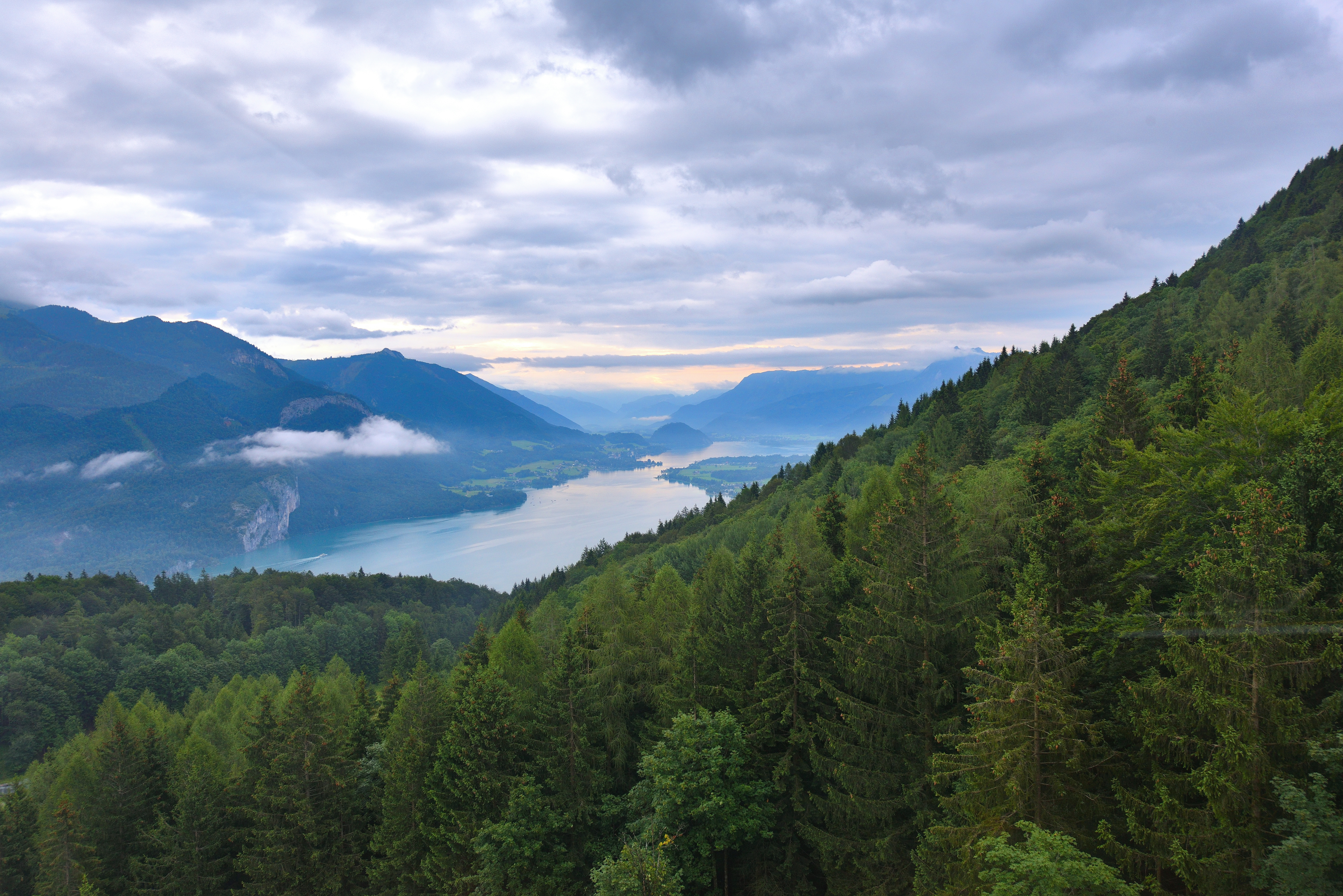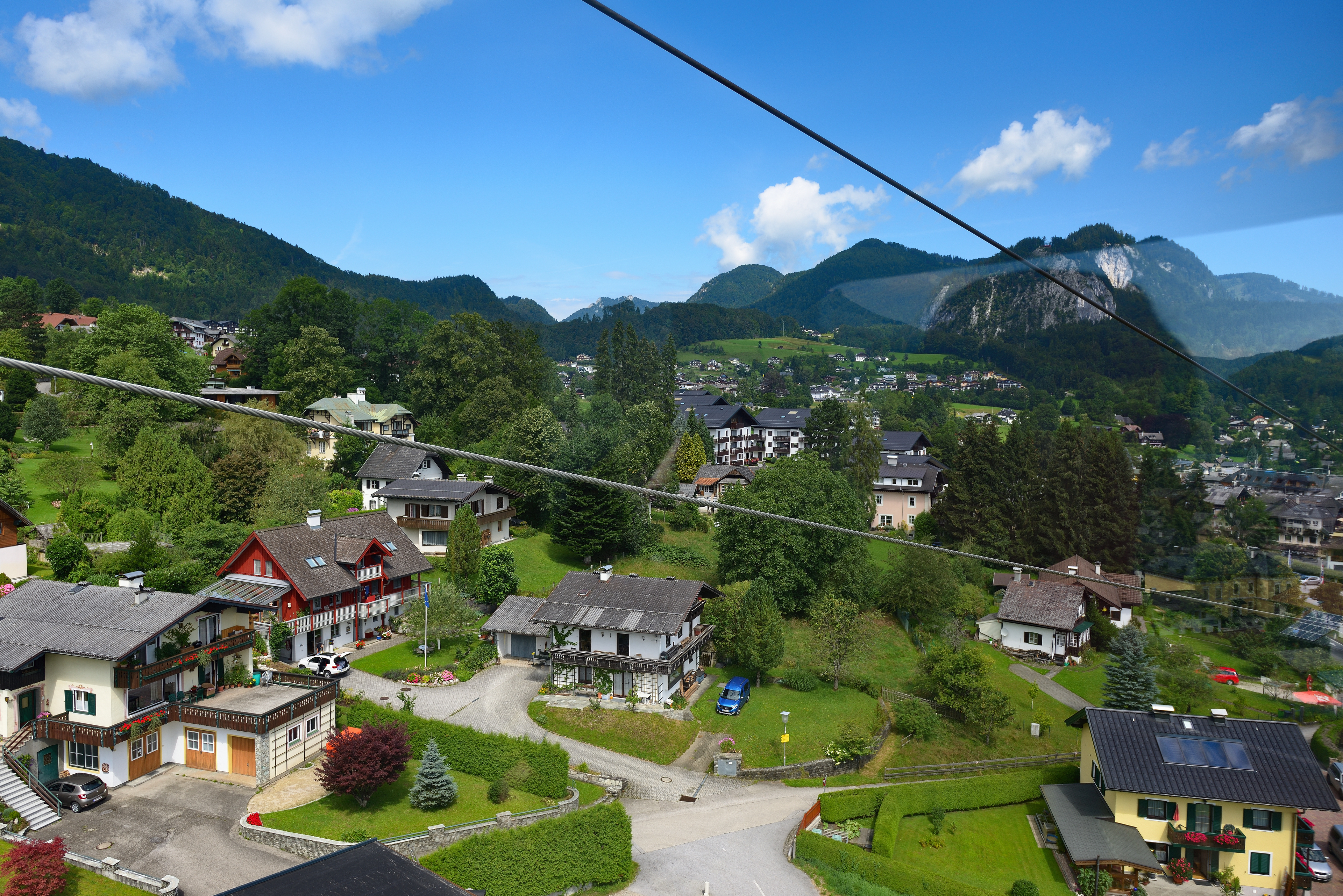 眼下に見えるのは、ヴォルフガング湖 [Wolfgangsee] と、その北西湖畔に位置するザンクト ギルゲン [Sankt Gilgen] の町。