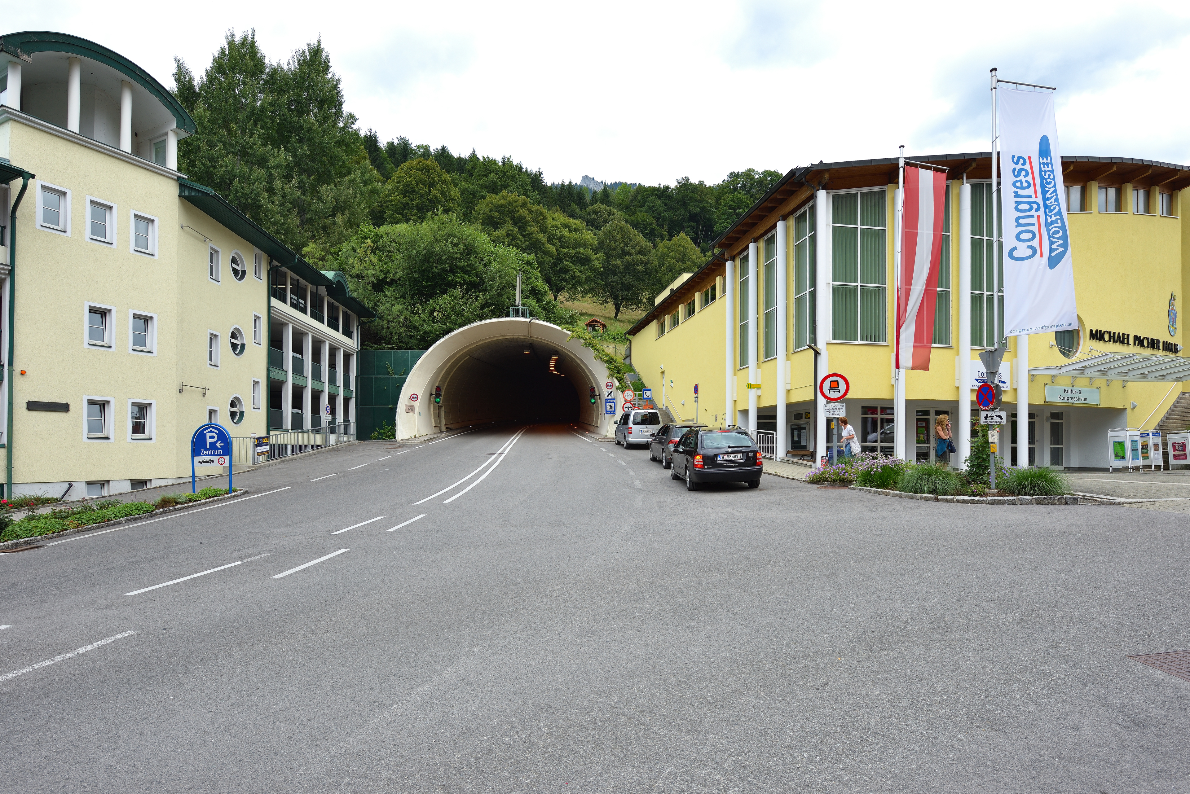 ハルシュタットの、町の景観を損ねないように設けられた、迂回トンネル。