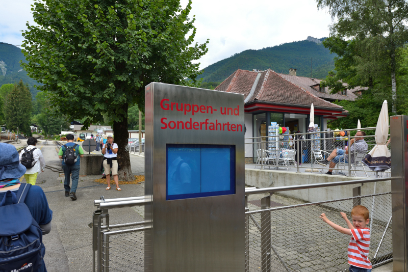 手前の道を左へ行くと、町の中心部と対岸 (東岸) にある鉄道駅 "Hallstatt" を10分で結ぶ、渡し船ターミナルがある。