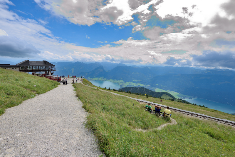 ヴォルフガング湖 [Wolfgangsee] とザンクト ギルゲン[Sankt Gilgen] の町並みを眺めながら頂上駅へ向かう。