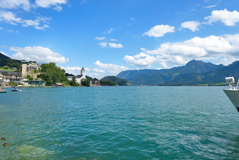 ヴォルフガング湖 [Wolfgangsee] とザンクト ギルゲン[Sankt Gilgen] の町並み。