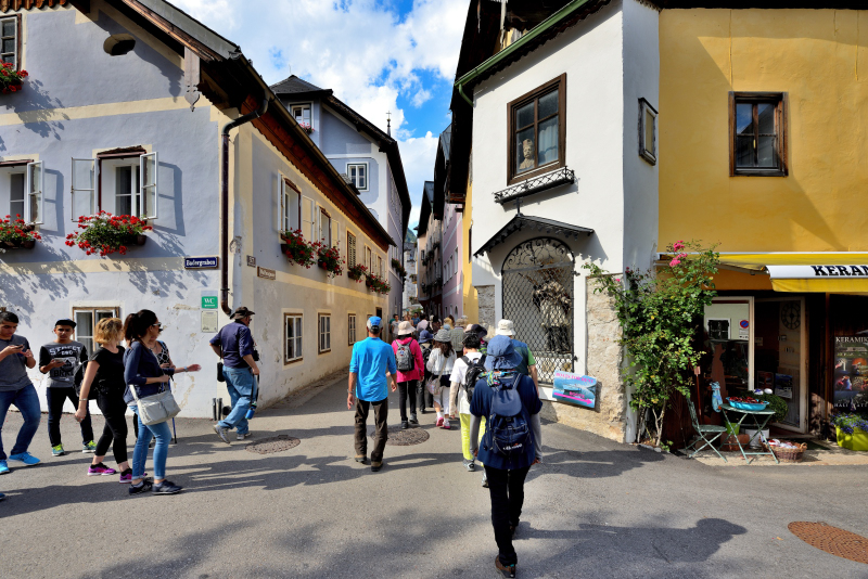 世界で一番美しい湖岸の町といわれるハルシュタット。 ゴーザウミュール通り [Gosaumühlstraß] からの眺め。