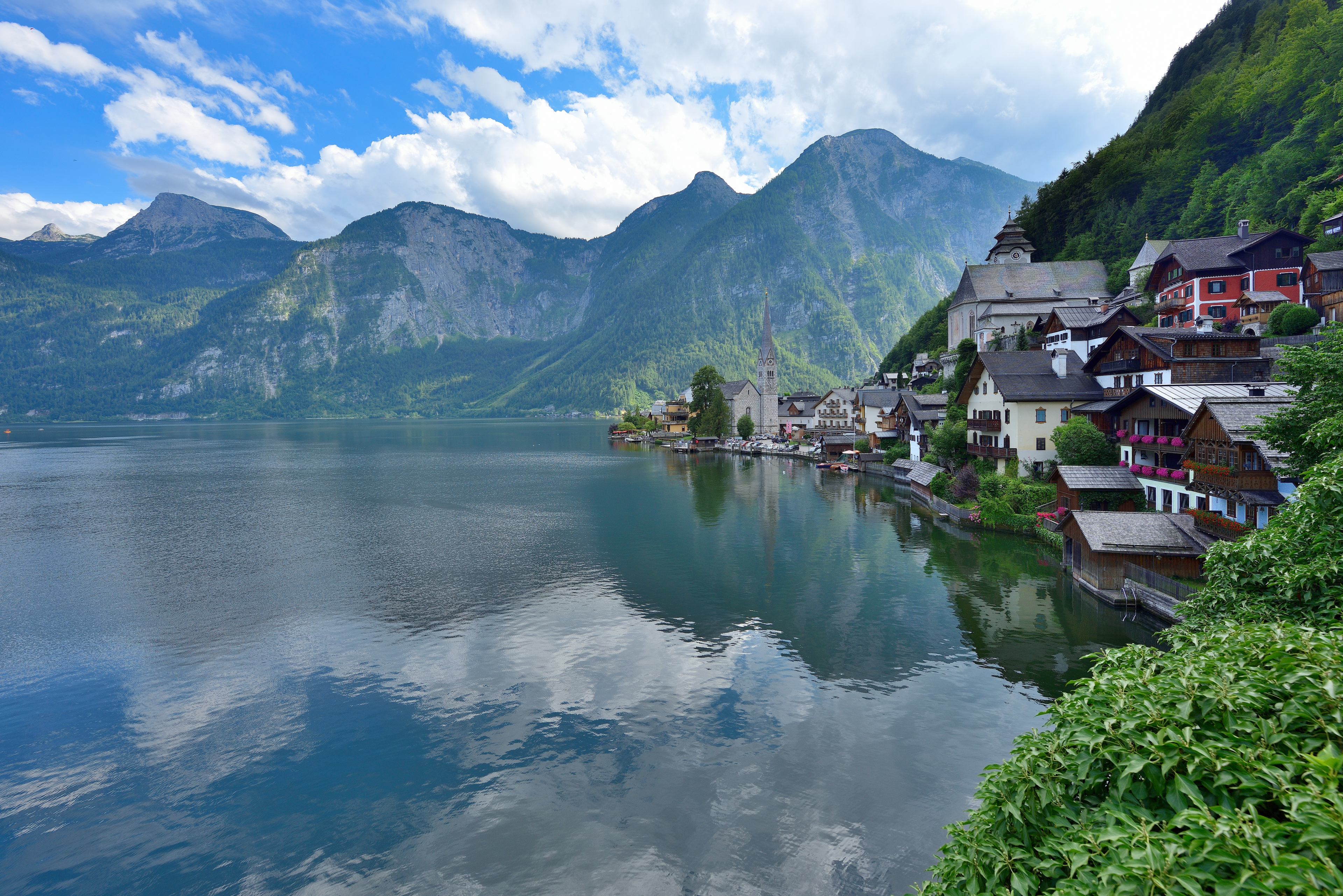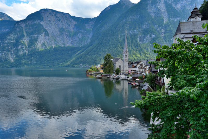 ハルシュタット湖にしがみつく様に建つ美しい町並み。