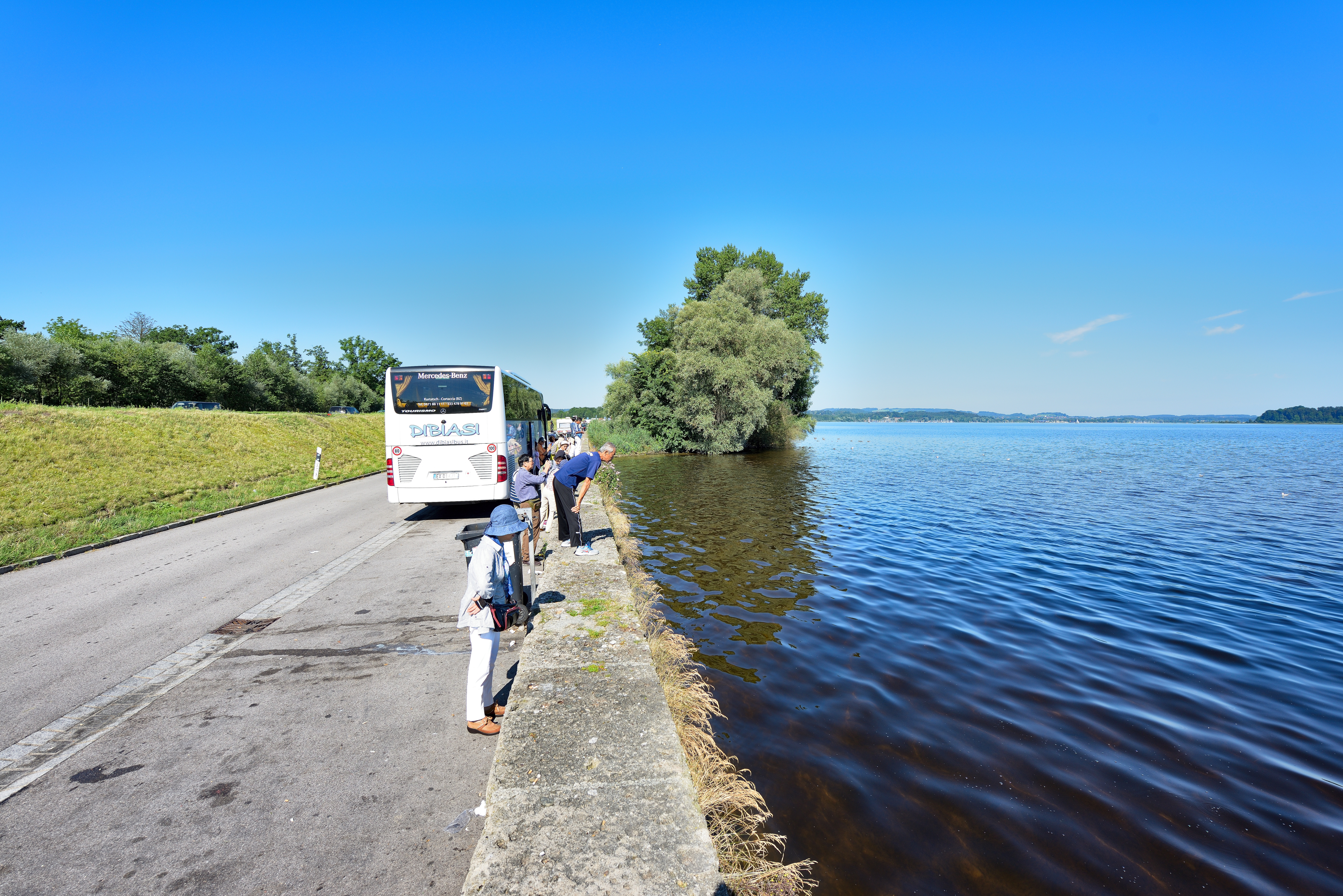 | キーム湖 [Chiemsee] (09:53) 湖畔て゛一休み。 キーム湖 [Chiemsee] は、ドイツ・バイエルン州最大の湖で、「バイエルンの海」とも呼ばれている。 湖水浴とボート遊びを楽しめる美しい湖で、3 つの島が浮かび、その 1 つにはベネディクト会の女子修道院がある。 「東」 |