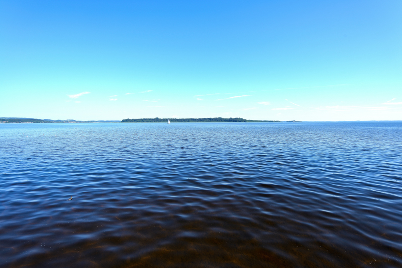| キーム湖 [Chiemsee] (09:53) 湖上にはヘルレン島 [Herreninsel] とフラウエン島 [Fraueninsel] があり、、その 1 つにはベネディクト会の女子修道院がある。 「北」 |