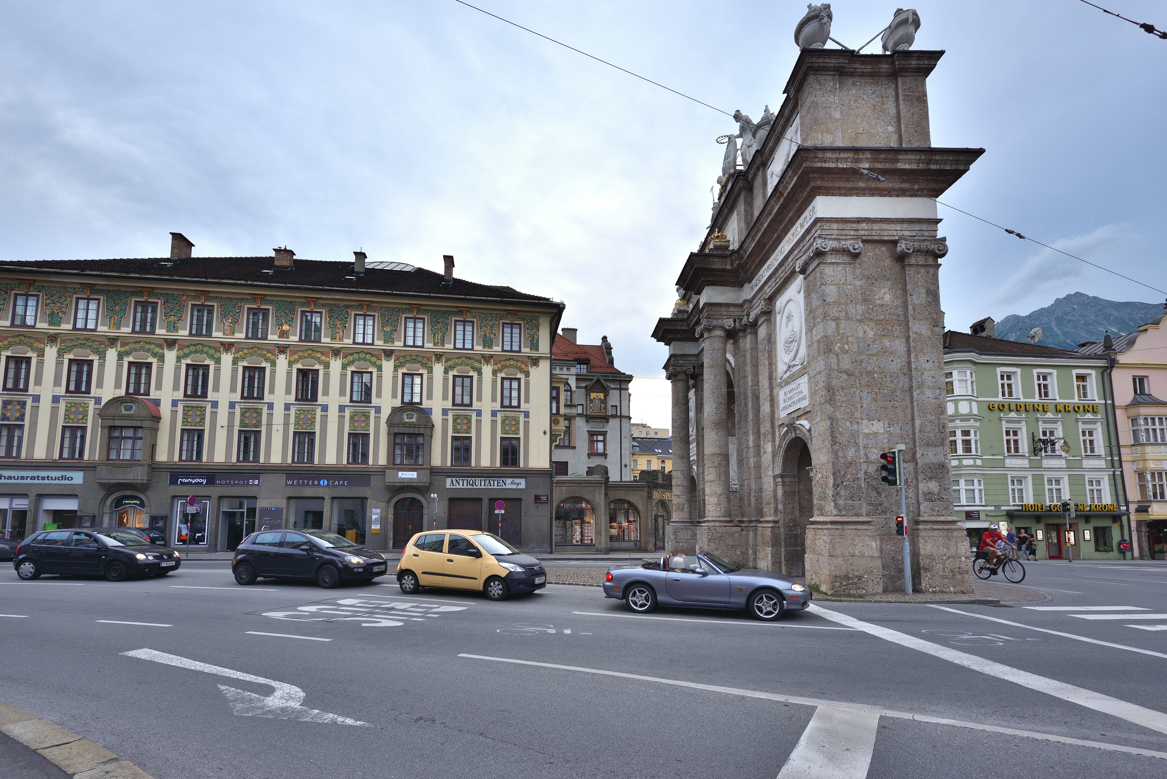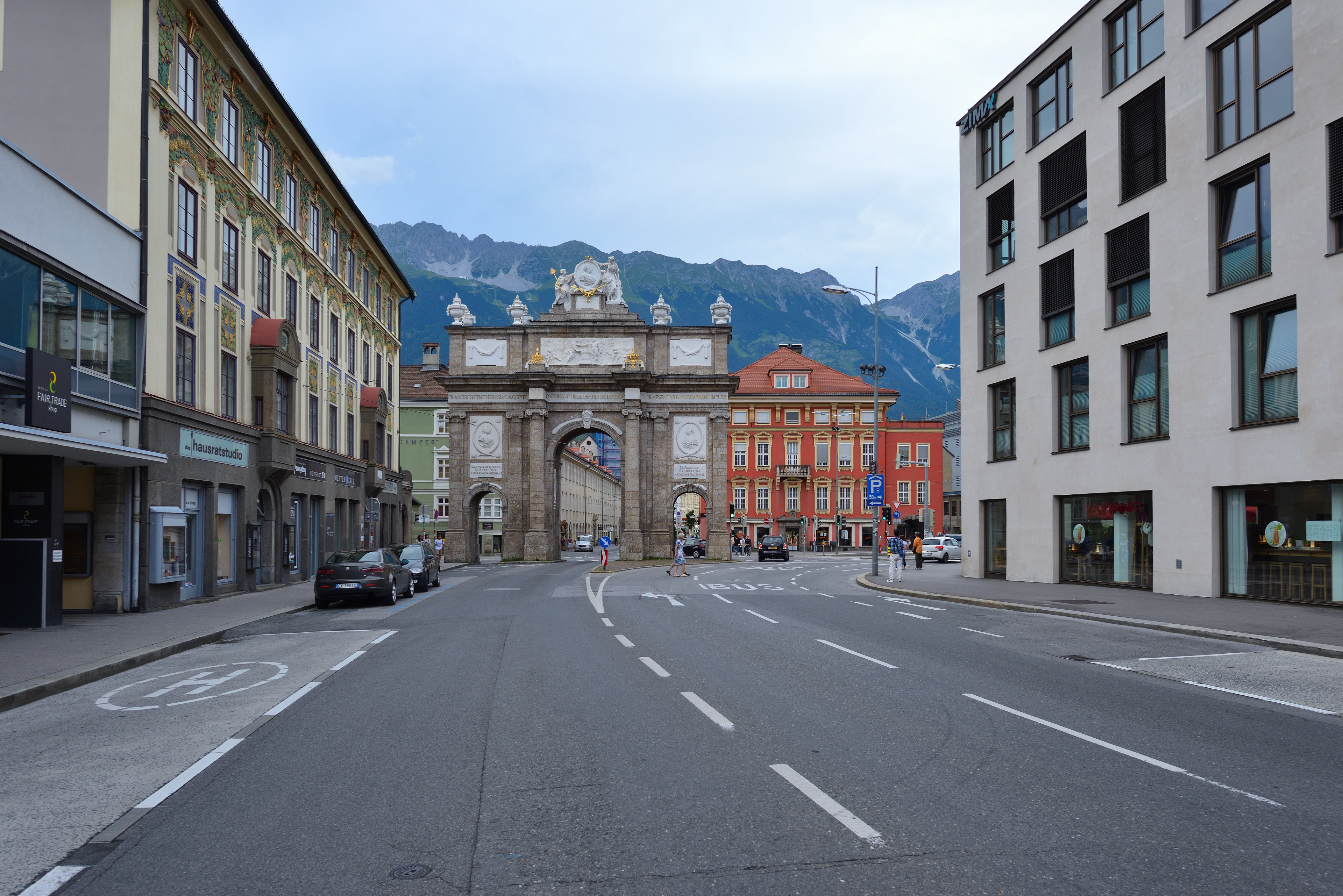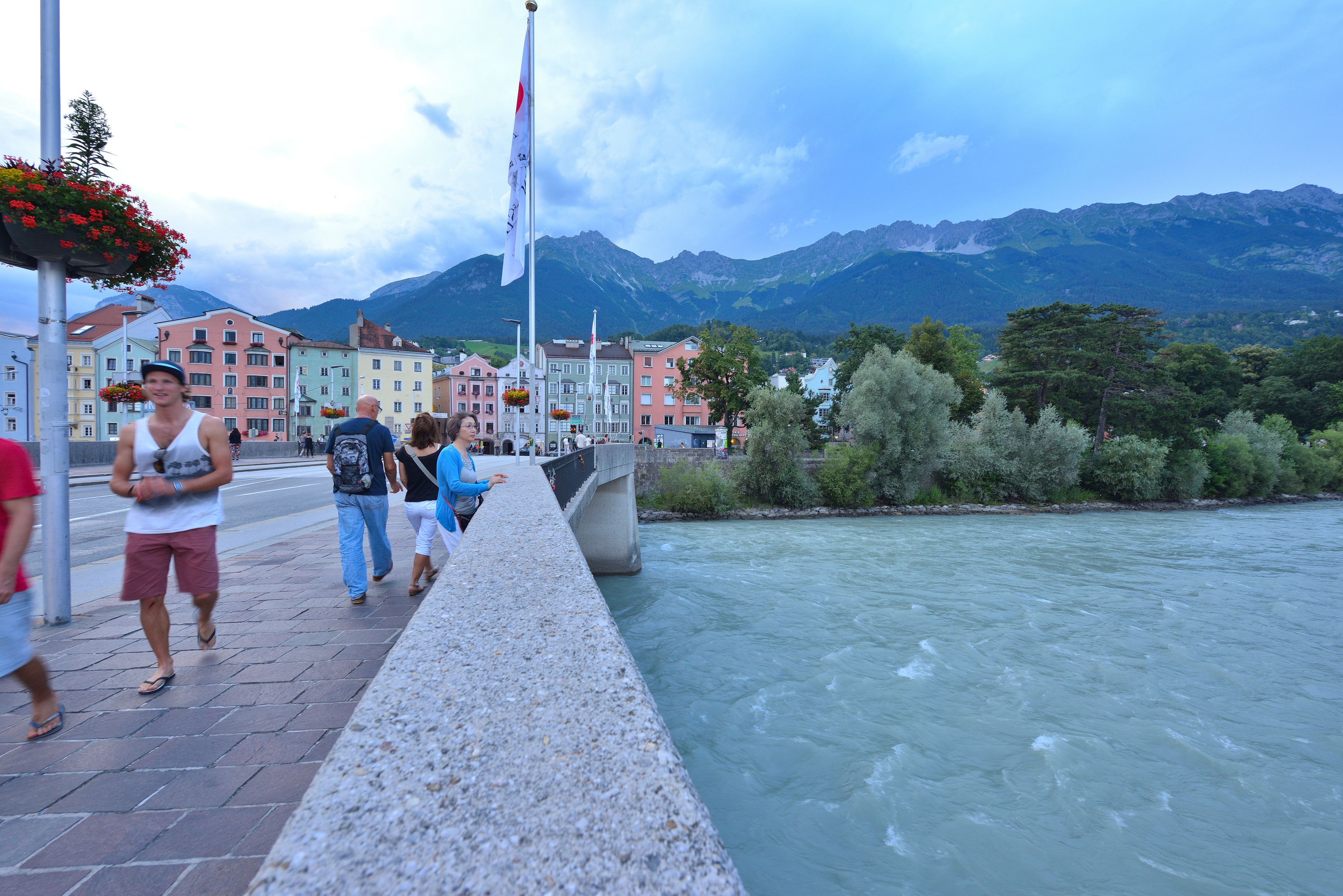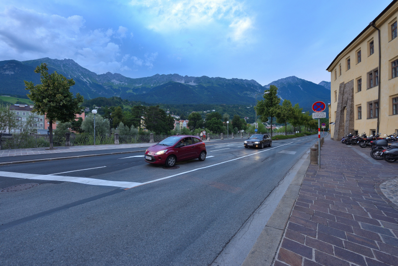 | イン橋 [Innbrücke] (11:19) 橋の下を通る道路は、イン渓谷高速道路 [Inntal Autobahn = Inn Valley Autobahn] 。 「南西」 |