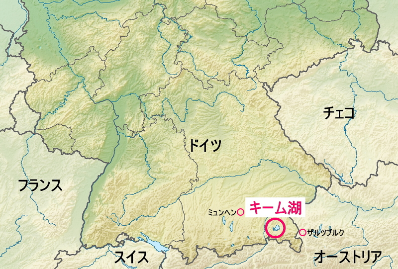 | キーム湖 [Chiemsee] は、ドイツのミュンヘンとオーストラリアのザルツブルクの間に位置している。 | |