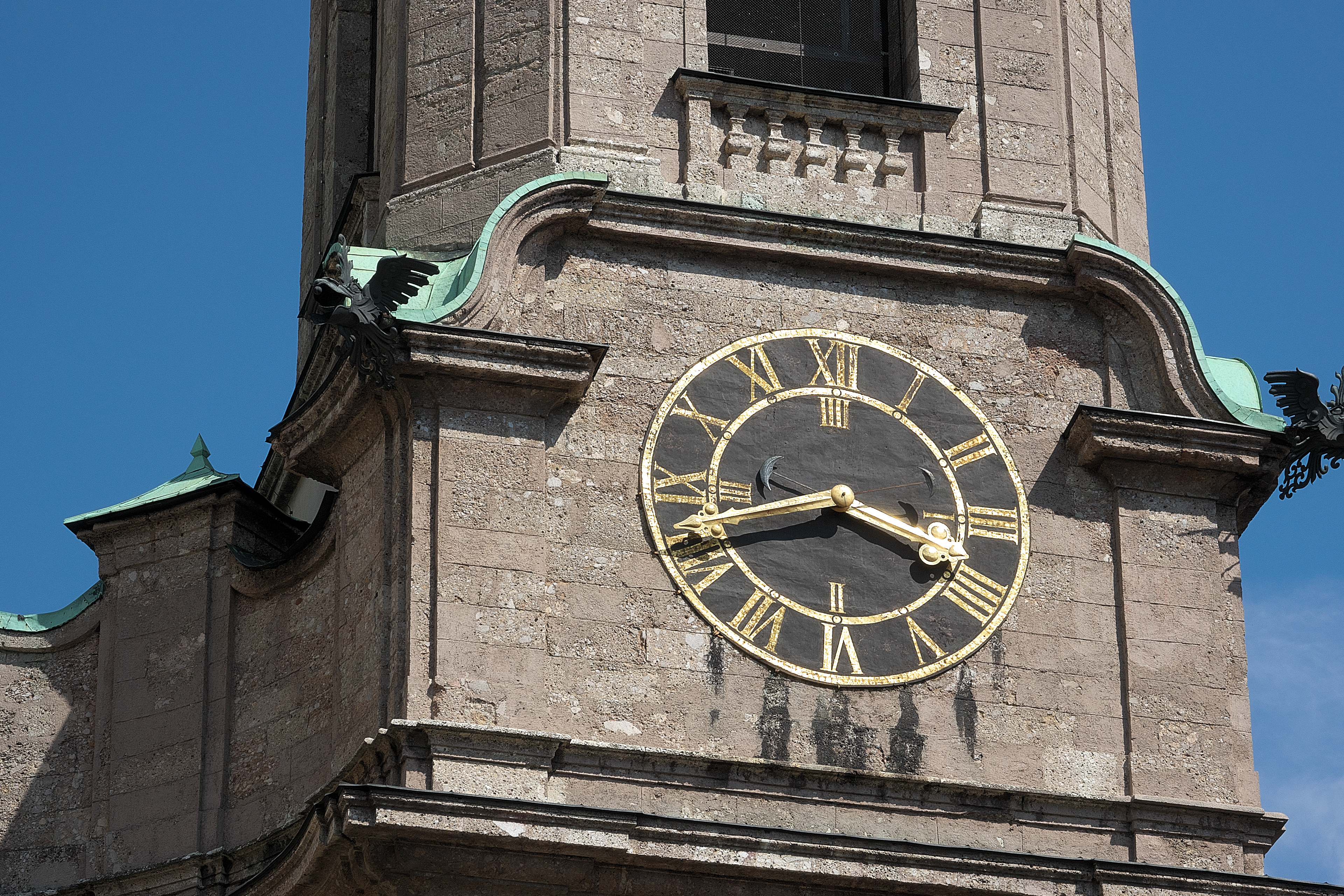 | 黄金の小屋根 [Goldenes Dachl] (15:51) ヘルツォーク・フリードリヒ通り [Herzog*-Friedrich-Straße] 。 この通りは「空っぽの財布」を持つフリードリヒ4世公爵にちなんで名付けられた。 * Herzog は公爵を意味する。 「北」MAP Lay.B |