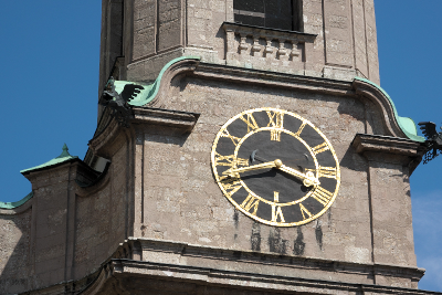 | 市塔 [Stadtturm] (20:31) "黄金の小屋根" 前のヘルツォーク・フリードリヒ通り [Herzog-Friedrich-Straße] に面して建つ市塔は、中世の頃、衛兵は450年近くもの間、この市塔から街を見守り、市民に火災などの危険を警告していた。 下層階は、かつて牢獄としても使われていた。 現在、塔は一般公開されていて、133段以上の階段を上ると、高さ31メートルの展望台に到着する。 「南南東」MAP Lay.B |