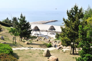 この海岸の沖合では、秋から春にかけて "海のり" の養殖が行われている。
